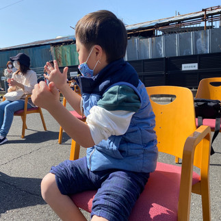 サックス奏者の方が手話をしながらの歌の時には、「マネっこ、してみよう!」と声かけをすると、皆さん手話もでき、お髭のポーズで「幸せ」を表現してくれていました!ドラムやサックス、ピアノのマネをする子、手を挙げ表現をする子、曲に合わせてジャンプの子、楽しみ方は色々です!