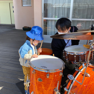 お子さん達はドラムを叩かせてもらいました!